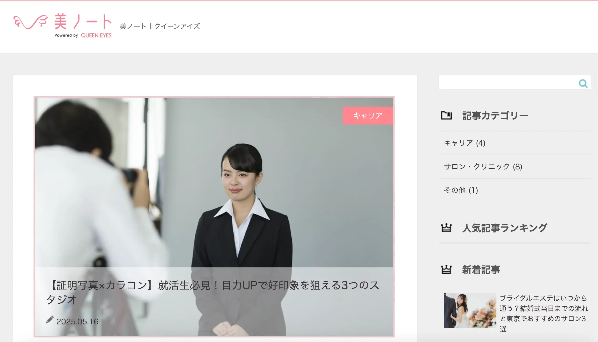 「美ノート」は、美容・ライフスタイルを中心に、日々をより豊かにする情報を発信するメディアです。就職、転職に関する記事の他に、メンタルケアやセルフマネジメント、日常に役立つ実践的なコラムも多数掲載しており、幅広い読者のニーズに応えています。